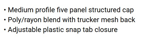 • Poly/rayon blend with trucker mesh back